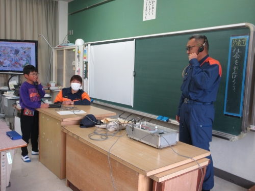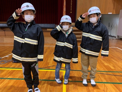事前に消防署の仕事の勉強をされて いたようで、たくさんの質問を準備し てもらっており授業で楽しくお話しさ せてもらいました。 消防署や消防団の仕事について興味 を持って体験してもらえてよかったで す。