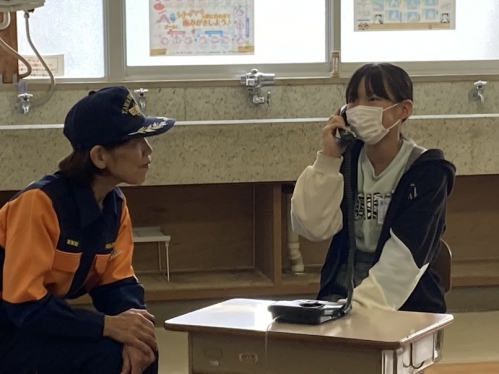 大城組合長に決意表明をするMTB隊・中島弘道隊長